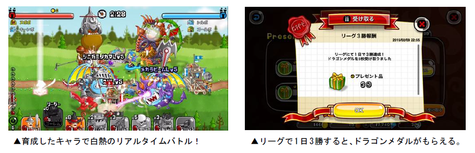 (3)「リーグ」で勝利すると「ドラゴンメダル」1 枚プレゼント!(1日1回まで)
