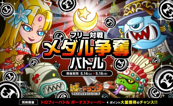5月14日(土)より、フリー対戦で勝利すると、報酬としてドラゴンメダルが1日最大9枚もらえる