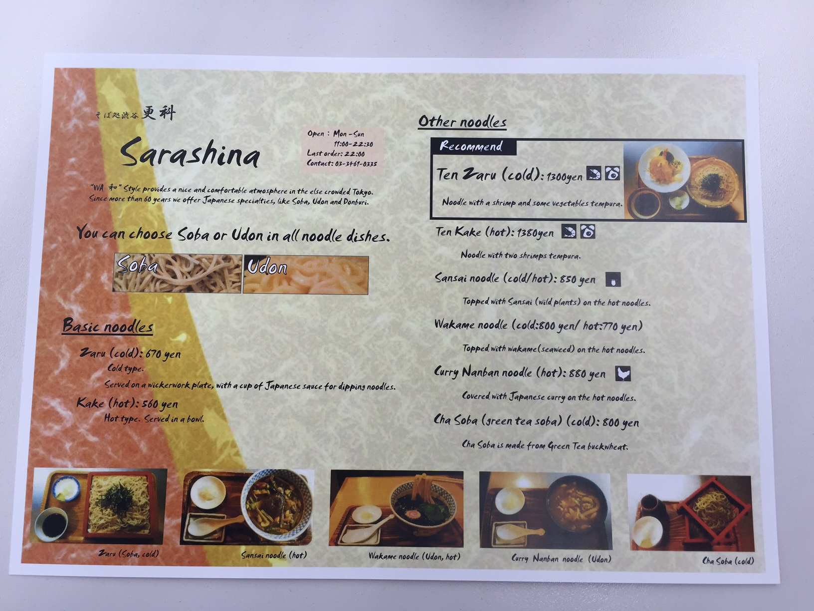 今回、EFアンバサダーの学生たちがサポートしたのは、東京・渋谷センター街に店を構える、そば処渋谷 更科(東京都渋谷区宇田川町22-4)の英語メニュー制作。更科のおすすめメニューをはじめ、宗教や文化を配慮した英語メニューを制作致しました。また今回、更科には、EFアンバサダーが2016年3月から配布活動を行っている「英語メニューステッカー」も設置致しました。