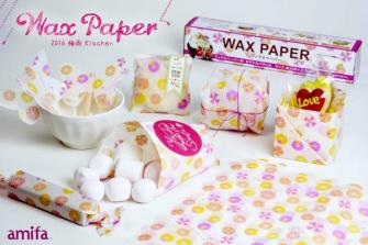 ワックスペーパーは様々な模様の傘を上から見た、賑やかなデザインです。雨の日はゆったりお家でお菓子作りはい