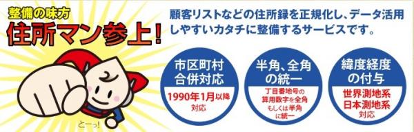 そういったニーズにお応えするべく、この度、合併後の住所を一括で変換できるサービス、整備の味方「住所マン参上!」を開発し、オープ ンサイトにてサービスを開始いたしました。