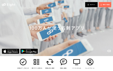 Eightは、名刺管理機能に加えてソーシャルの仕組みも取り入れた、100万人が使う名刺アプリです。交換した名刺は、スマホで撮影するだけで、オぺレーターの手入力によって正確にデータ化され、全ての名刺情報にいつでもアクセスできます。挨拶した相手もEightユーザーであれば、アプリの名刺交換機能で直接つながることもできます。Eightでつながれば、仕事の近況や異動・転職情報などをニュースフィードで知ることができ、継続してコミュニケーションがとれるようになります。