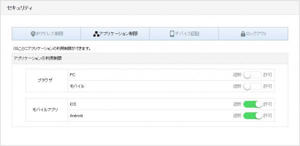 「アプリケーション制限」を利用することで、ブラウザでのログインを完全にシャットアウトすることができるため、モバイルアプリケーションに限った効果的な運用を実現することができます。