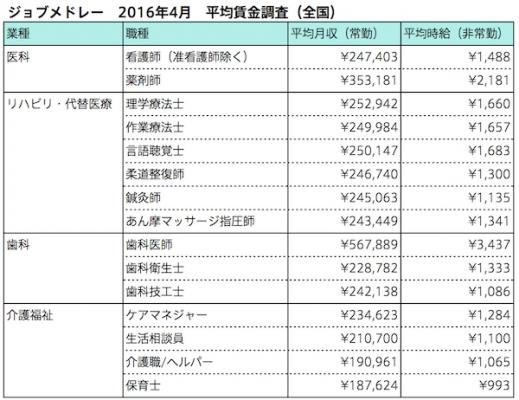 株式会社メドレー(本社:東京都港区、代表取締役社長:瀧口 浩平、代表取締役医師:豊田 剛一郎)が運営する医療介護求人サイト「ジョブメドレー」は、医療介護系15職種について、平均月給・時給をまとめました。2016年4月の結果をお知らせします。