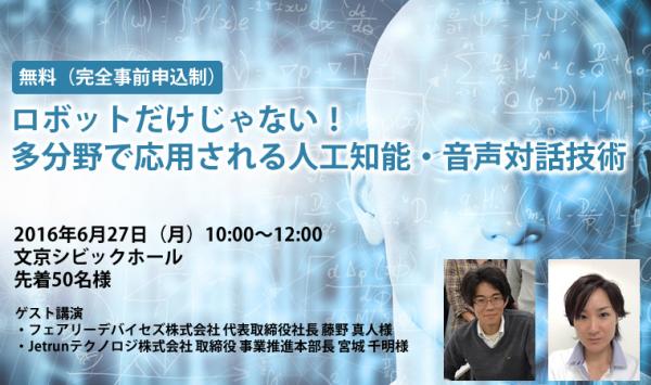 音声合成エンジン「AITalk(R)」を開発・提供する株式会社エーアイ(本社:東京都文京区、代表取締役社長:吉田 大介、以下エーアイ)は、2016年6月27日(月)、東京都文京区にて法人様向けの無料セミナーを開催いたします。