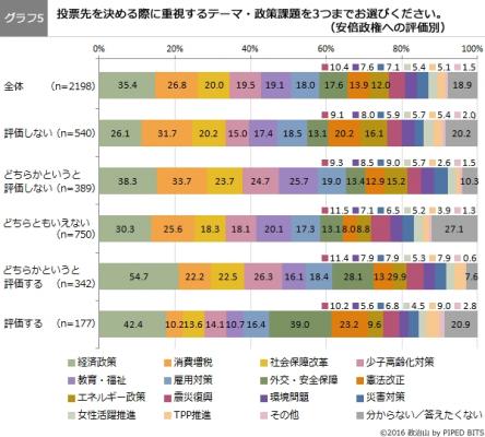 株式会社パイプドビッツ(東京都港区、代表取締役社長CEO 林哲也、東証1部パイプドHDグループ<証券コード3919>、以下「パイプドビッツ」)が運営する、政治・選挙情報サイト「政治山(せいじやま)」は、2016年5月20日から5月25日にかけて、全国の18歳以上の男女を対象に、政権運営と政策課題の取り組みに対する評価が参院選にどのような影響を及ぼすのか、有権者意識調査を実施し2,198名から回答を得ました。本日6月2日に「政治山」で調査結果のサマリー版を公開しましたので、お知らせいたします。