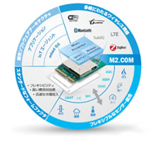 M2.COMは、センシング・デバイスのための全く新しいプラットフォーム・フォームファクタです。標準化され既に広く活用されているM.2フォームファクタを採用し、産業用途に必要とされる様々なタイプのワイヤレス・コネクティビティと内蔵MCUによるコンピューティング機能を兼ね備え進化したモジュールとして、MCU,センサ,およびコンピューティングの主要ベンダーが定義したオープン・プラットフォームです。