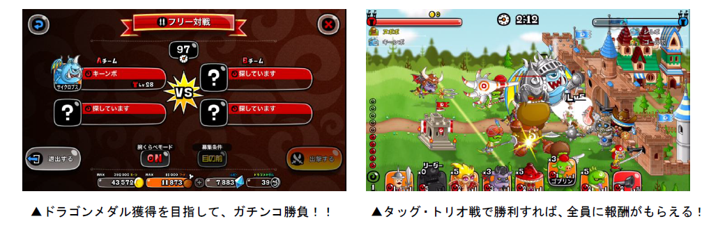 「フリー対戦メダル争奪バトル」では、フリー対戦で勝利すると、報酬としてドラゴンメダルが