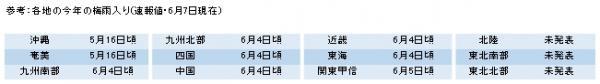 先月までは全国的に晴れる日が多かったものの、今月は九州から関東にかけて梅雨入りの発表(速報値)があった4~5日以降、くもりや雨の日が増え、湿度も高くなってきています。今週末は、梅雨入りした各地で気温が上がって、かき氷が食べたくなる蒸し暑さになり、多くの所で例年(過去10年の平均)より早いシーズンインとなるでしょう。