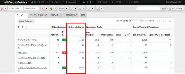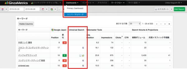 Ginzamarkets株式会社(本社:東京都港区、代表取締役社長:レイ・グリセルフーバー)が提供する大規模サイト向けSEOツール『GinzaMetrics』は、6月12日、オーガニック検索結果の表示状況をモニタリングする「ユニバーサルサーチ機能」をリリースいたしました。これにより、検索順位と合わせて、画像、地図、ニュース等のユニバーサル検索とリスティング広告の表示状況を把握できるようになります。