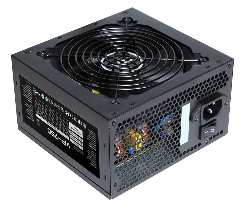 VP-750は、ATX12V v2.4準拠、80PLUS BRONZE認証を取得した電源ユニットです。容量750W、1系統56Aの出力を発揮します。自動回転数制御に対応した120mm静音ファン、負荷60%までファン回転数を900RPM以下で制御することにより、抜群の静音性を実現します。