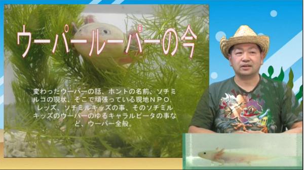 かつてCMなどで一世風靡したウーパールーパー。そんなかわいいペットの知られざる意外な事実に迫ります。前半では日本ウパルパ協会代表で日本最大級のウーパールーパーブリーダーでもある渡部氏より、実は野生種は絶滅の危機に瀕しているという衝撃の事実や繁殖方法、変わった品種等について解説します。後半では同協会の副代表であり、ウーパールーパー専門店うぱるぱ屋の店長“うぱお”により、ウーパールーパーの飼育方法について解説します。大量のウーパールーパーを日常的に管理する両名による、経験に基づいたノウハウをお教えします。