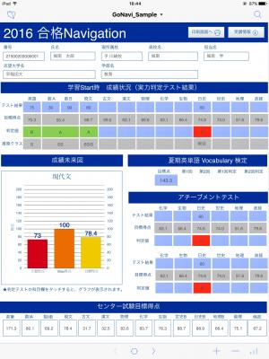 「現役合格保証」の城南予備校は、FileMaker(※ファイルメーカー)で生徒の成績を管理するシステム『Go!Navi』を開発し、6月中旬より客観的かつきめの細かい生徒指導を実現しました。このシステムでは、入学時の実力判定テスト結果と過去の生徒データを紐付けすることで、大学入試センター試験の予想得点や最高得点を算出することが可能です。さらに現在の受講科目やレベルはもちろん、授業時に実施した小テスト結果や、城南予備校オリジナル検定試験である「大学入試英単語Vocabulary(ボキャブラリー)検定」の結果も表示されるため、生徒一人ひとりに対して細かなデータを基にした客観的な指導が可能となりました。