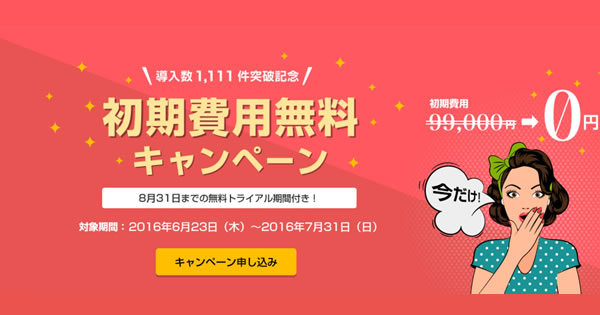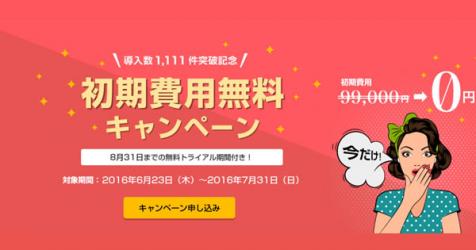 6月23日より1,111アカウント突破を記念して、初期費用無料キャンペーンを実施致します。