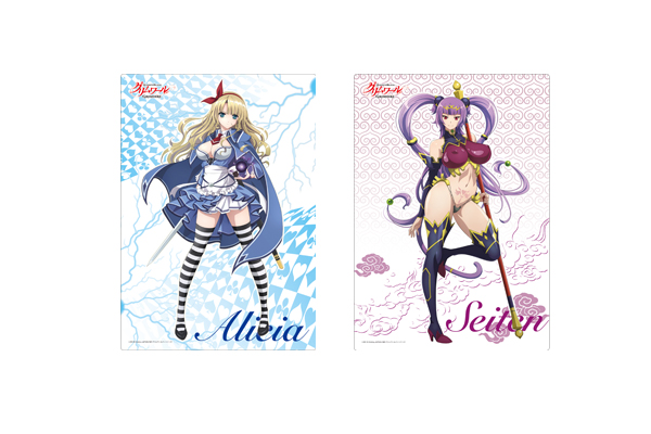 『クイーンズブレイド グリムワール』の主人公「アリシア」と、メルファランドの“悪役(ヴィラン)”である「セイテン」がA3クリアポスターとなって登場です!りんしん氏が描く、セクシーな二人の美闘士をぜひお手元に!