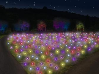 LEDライトを使用した「天空の花畑」で、「太陽光発電LEDライトの最大の展示
