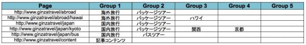 グループの設定は、エクセル上で簡易に設定いただけます。グループは1つのコンテンツに対し5つまで設定可能です。