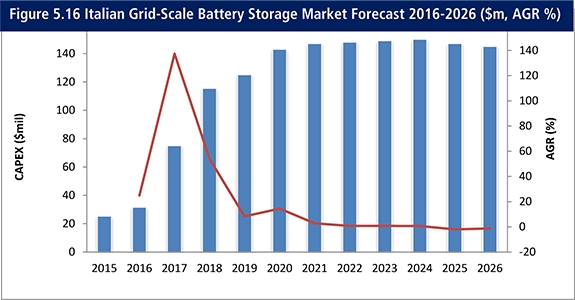 5.世界主要国のグリッドスケールの電池貯蔵市場予測 2016-2026年