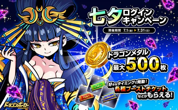 期間中、ゲームにログインすると最大25日間「竜石」が1日1個もらえる「七夕ログインキャンペーン」を