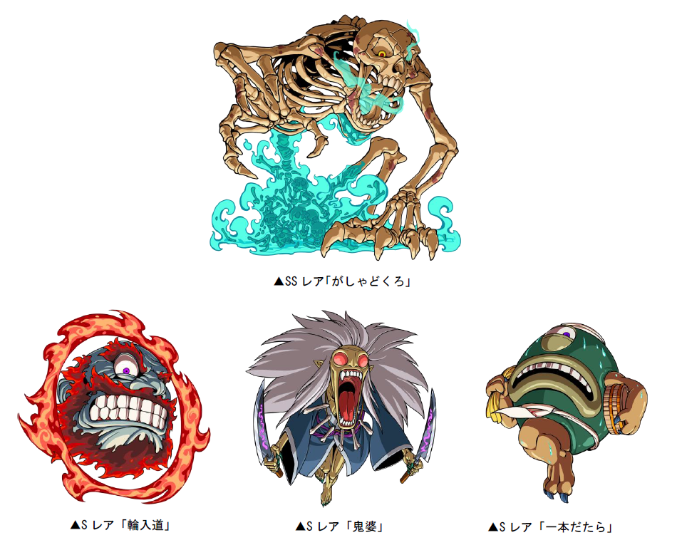 Sレア「輪入道」「鬼婆」「一本だたら」と交換することができます。