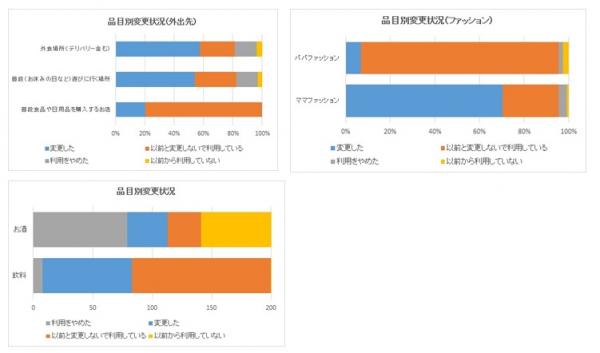 外出先に関しては、毎日利用するスーパー等に変更はなく、外食先や、休日のおでかけ先を変更するパパママが多いという結果が出ました。
