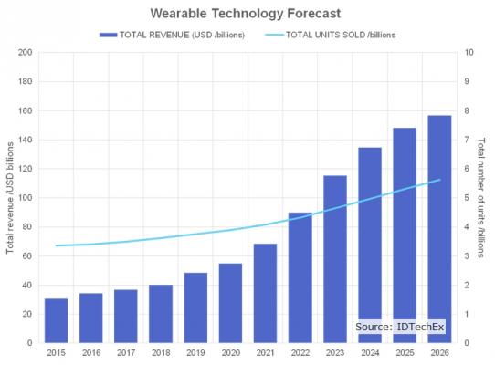ウェアラブル技術 2016-2026年:市場、関連企業、10年予測