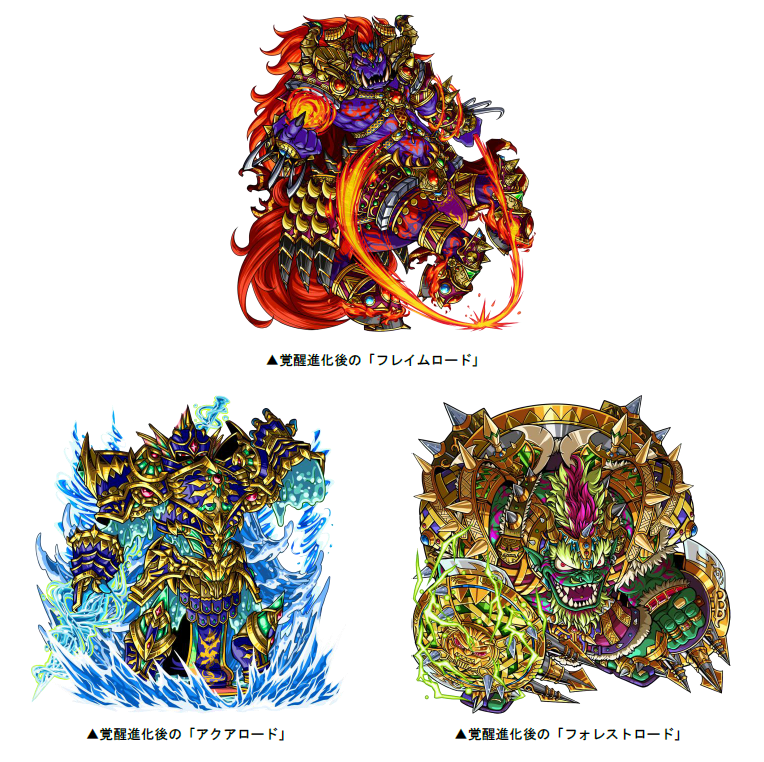 本ダンジョンでは、覚醒した「フレイムロード」「アクアロード」「フォレストロード」が