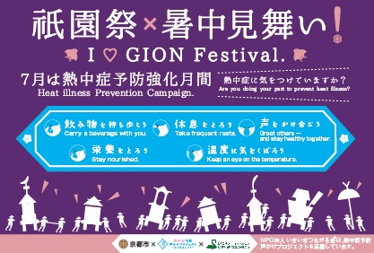 熱中症予防声かけプロジェクト総合運営事務局(東京都渋谷区、事務局長:山下太郎)は、2016年7月17日・24日(両日ともに9時~12時まで)、プロジェクト賛同自治体であり、訪日外国人観光客に大人気の京都市と一緒に、京都市役所 市庁舎前広場にて、祇園祭を安全に楽しんでいただけるよう「熱中症予防声かけ」イベントを開催いたします。