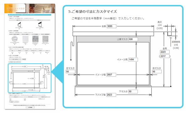 そこでオーエスプラスeでは、規格品に飽き足らないユーザーのために、簡単にご希望のサイズのスクリーンを、設計し確認できるシステムを開発いたしました。