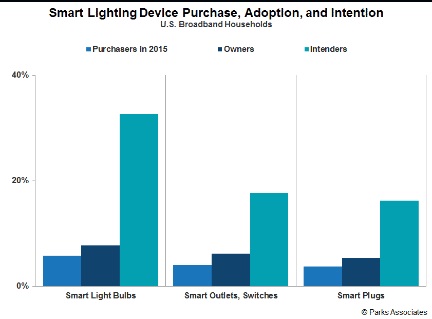 ネットワーク接続された家庭用のスマート照明は、雰囲気、エンターテインメント、エネルギー、セキュリティ、安全性、さらには健康上の利便性までも向上させています。米国調査会社パークスアソシエイツ社(Parks Associates)の調査レポート「ネットワーク接続世帯のスマート照明市場概観」は、ネットワーク接続世帯の製品やサービスのスマート照明のエコシステムを査定しています。単独型の照明システム、自己導入型のホームコントロールプラットフォーム用の照明システム、双方向性のセキュリティサービス用の照明システム、ホームシステム全体用のカスタム導入による照明といった、4つの主要な産業区分に注目しています。照明機器とシステムの主要企業、市場促進要因、産業動向と、いくつかのスマート照明機器の5年間の市場予測も行っています。