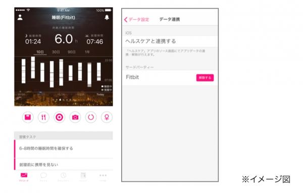 FitbitのデバイスとFiNCサービスを連携することで、今まで手動で入力していた睡眠時間などのライフログが自動的に入力*2できるようになり、また新たに心拍データが自動的に取得できるようになるため、ユーザーは手間をかけずに、より精度の高い心身の健康状態をアプリで確認することができます。