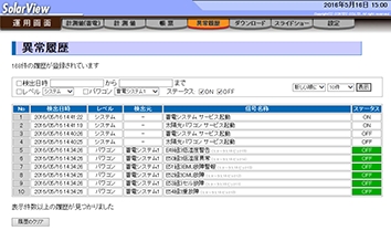 蓄電システムやパワーコンディショナの異常を検出すると管理者に電子メールで通知します。また、異常検出の履歴は、Webブラウザ上で閲覧できます。