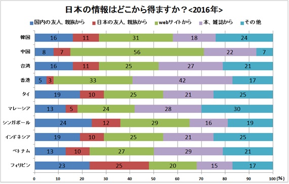 昨年までは「日本に行きたい理由は何ですか?」という訪日前の質問でしたが、前述の質問同様訪日外国人増加の現状を受け、今年は「日本の情報はどこから得ますか?」という質問に変更しました。