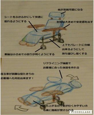 ●アルミなど素材の一部変更による軽量化をさせることにより施術者の負担を軽減させたい。