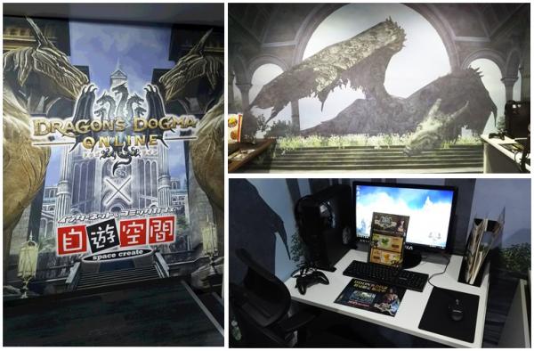内装は作品を象徴する施設「白竜神殿」の「謁見の間」を模したものとなっており、中に入ると、白竜がお出迎え。全5席それぞれにGALLERIA ドラゴンズドグマ オンライン推奨PC SF、ホリ製『ドラゴンズドグマ オンライン』推奨ゲームパッド「EDGE301 ゲーミングパッド」を設置し、快適にゲームをプレイすることが可能です。