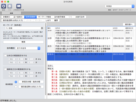 またオフラインで使用できます。お使いになる場所にインターネット環境がなくても、Mac一つで最新の法令をいつでもどこにでも持ち出せます!
