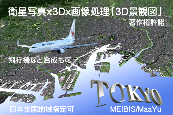 3、既存の地域(主要都市及び主要観光地指定:弊社保有3D景観)+合成するもの指定