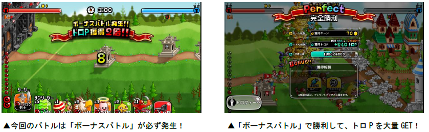 発生します。ボーナスバトルではバトルの勝敗に関係なく、獲得トロPが2・3・5・10倍のうち