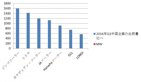 ジンコソーラーは四半期の出荷量が1600MWで首位