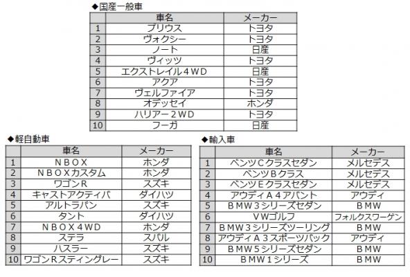 当ランキングは、全国約7,500店の中古車販売店が販売プロセスの一環であるオークネットTVオークションを利用し、ご成約頂いた車両について、国産一般車・軽自動車・輸入車に分けて集計したものです。