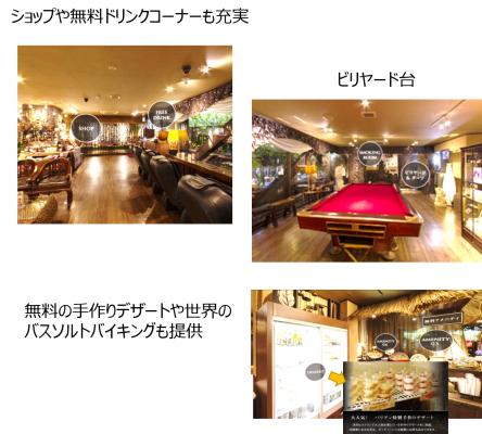フリードリンクコーナーやビリヤード・ダーツ台を発見したり、手作りの無料デザートや世界のバスソルトバイキングを発見するなど、さまざまな特長に触れてもらうことで、ホテルバリアンリゾートの良さをしってもらえるコンテンツになっています。