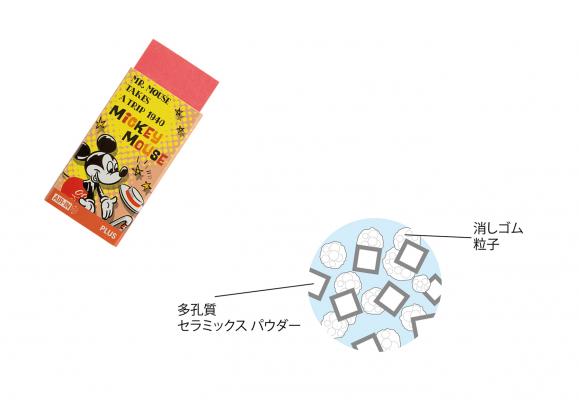 ■多孔質セラミックスパウダーとエアーが無数のカドを生み出し、“いつもカドで消すような軽い消し心地”を実現。