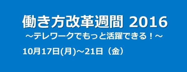またテレワーク推進フォーラム(総務省、厚生労働省、経済産業省、国土交通省、学識者、民間事業者等による構成)が2016年11月1日(火)から11月30日(水)に主唱するテレワーク普及推進運動の「テレワーク月間」とも連携します。