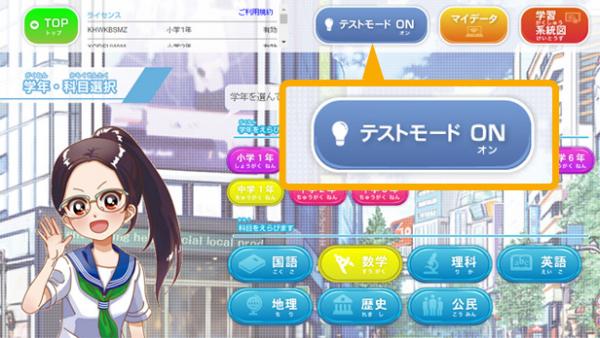 また、「テストモード」では、テストの範囲に含まれる単元を自分で組み合わせて、テスト対策問題を作成することができます。