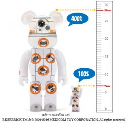 BB-8(TM) ANA JETの就航を記念したBE@RBRICK BB-8(TM) ANA JET。ANA、BE@RBRICK、STAR WARS(TM)共同企画アイテムのBE@RBRICKを数量限定にて販売いたします。BB-8(TM) ANA JETの機体を、BE@RBRICK 100%、400%で再現いたしました。背面にはSTAR WARS(TM)のロゴがプリントされており、腕部分には、BB-8(TM) ANA JETの機体ナンバー、足部分には、ANAの垂直尾翼をモチーフにしたデザインをプリントしています。
