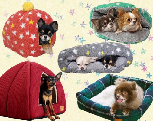 包みこまれたいわんちゃんにはテント型やシェル型、筒状クッションベッドがおすすめ。