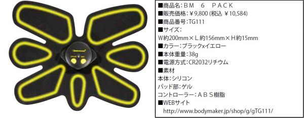 日本発のスポーツブランド「 ボディメーカー」は、装着してスイッチを入れるだけで適度な運動ができる、 【BM 6 PACK】を9 月の中旬より全国のボディメーカー直営店及びオンラインストア(http://www.bodymaker.jp/)で販売を開始致します。