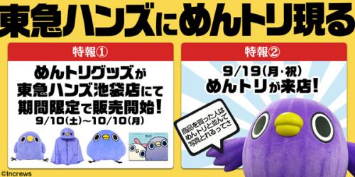 さらに9月19日には「めんトリ」がイベント会場に来店予定!めんトリに会いに、ぜひ東急ハンズ 池袋店へお越しください。