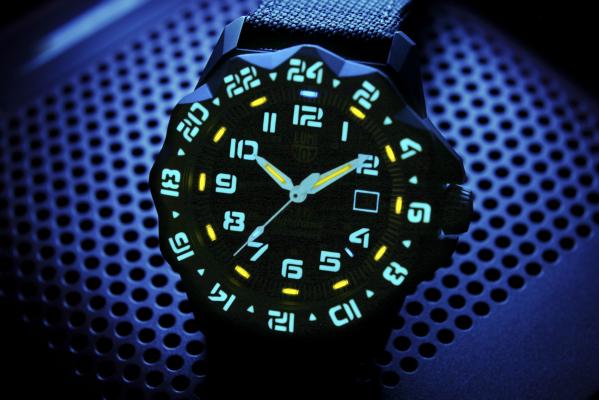 今回のモデルの最大の特徴は、ルミノックス史上最高の視認性。25年間光り続ける自己発光システム「ルミノックス・ライ ト・テクノロジー」に加え、ダイヤルそしてルミノックス初となるベゼル、時分針、秒針へも「スーパー・ルミノーバー」を採用。