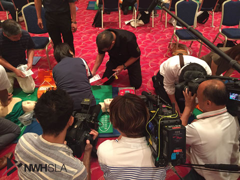 ガイドライン2015の改正に伴う「応急手当普及員実技講習」も開催され、参加された皆様とともに蝶野代表も実技を行いました。